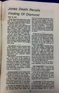 I had read of the Jones Diamond in an article I came across while doing genealogy.  Shirley Donnelly wrote an article about it which was included in a keepsake book of his articles.  This is the article as it appeared within the book: