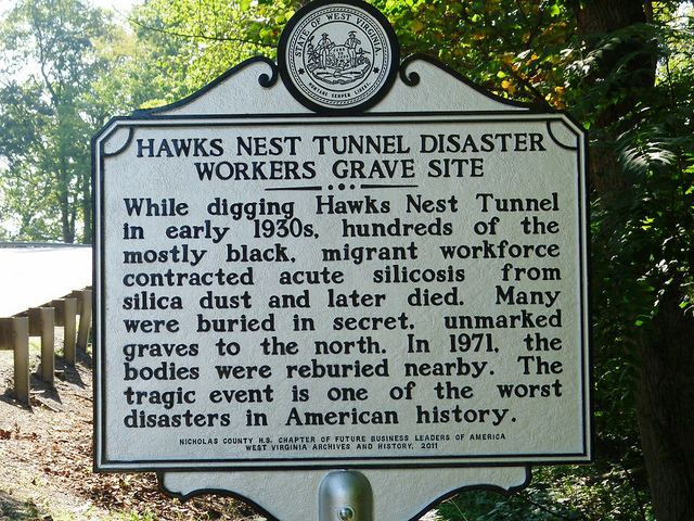 Per the National Parks Page: The Hawk’s Nest Tunnel Disaster: Summersville, WV