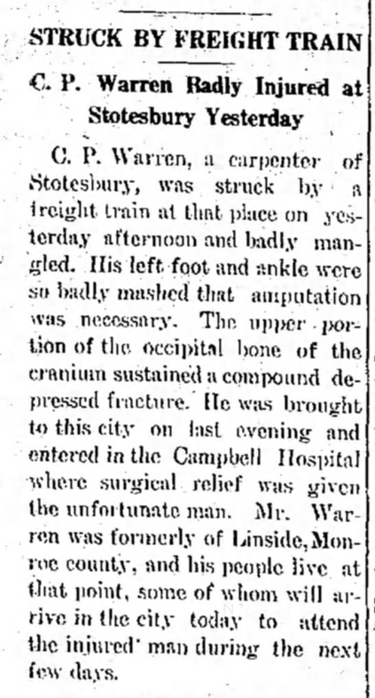 Shuffling through all of the patient updates and the same repeated ad, I was stopped in my scrolling tracks by this clipping. The Campbell Hospital was destroyed in a massive fire thatt hit the business district. In three hours almost fifty buildings were burned, some like Campbell Hospital were totally lost.