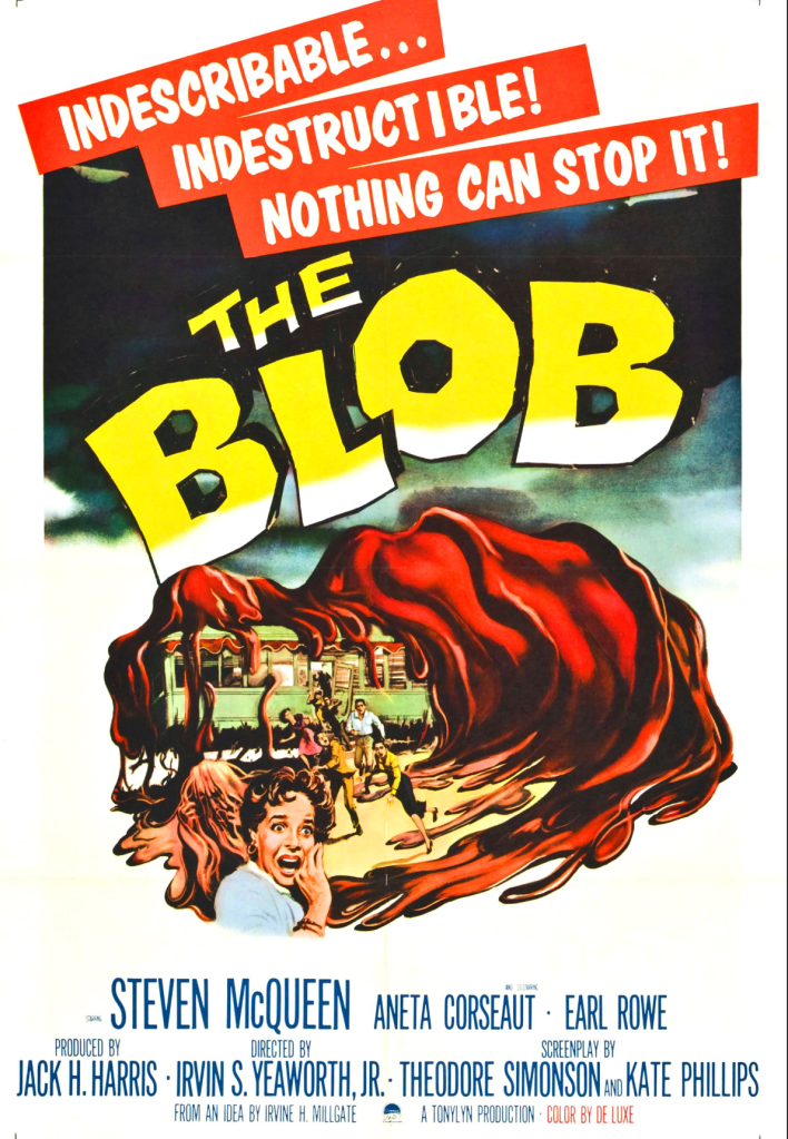 Basically: something crashes in the woods from another planet. There is a big dollop of jelly. The people of a nearby small town refuse to listen to teenagers who have witnessed the blob’s destructive power. In the meantime, the blob just keeps on getting bigger.