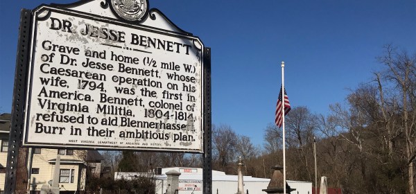 Title: Dr. Jesse Bennett Inscription: Grave and home (1/2 mile W.) of Dr. Jesse Bennett, whose Caesarean operation on his wife, 1794, was the first in America.