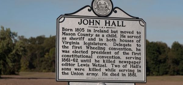 In Mason County WV, along Rt 62, Just below the Mason County airport, there is a historical marker for John Hall. It notes: “Born 1805