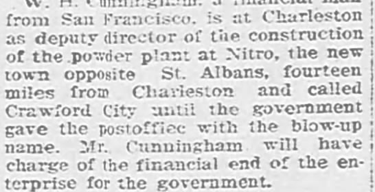 Reading the Feb 1918 article on Nitro in The West Virginian newspaper was fascinating. The government opens a huge plant and decides to build an